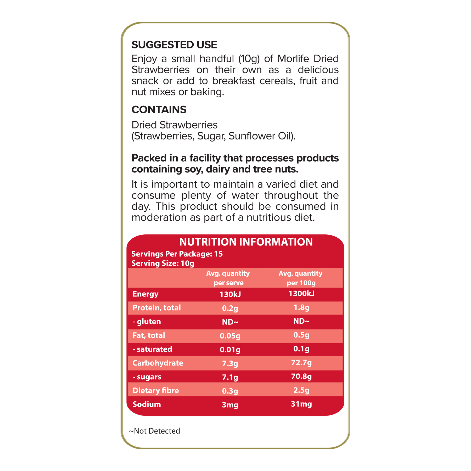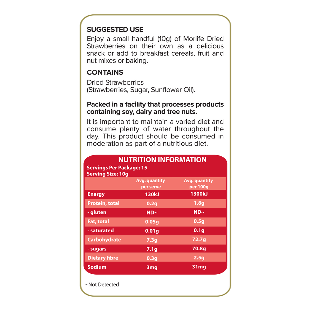 Morlife has carefully selected strawberries that are dried using an infusion process that creates a moist and delicious soft textured strawberry bursting with sweetness and flavour.