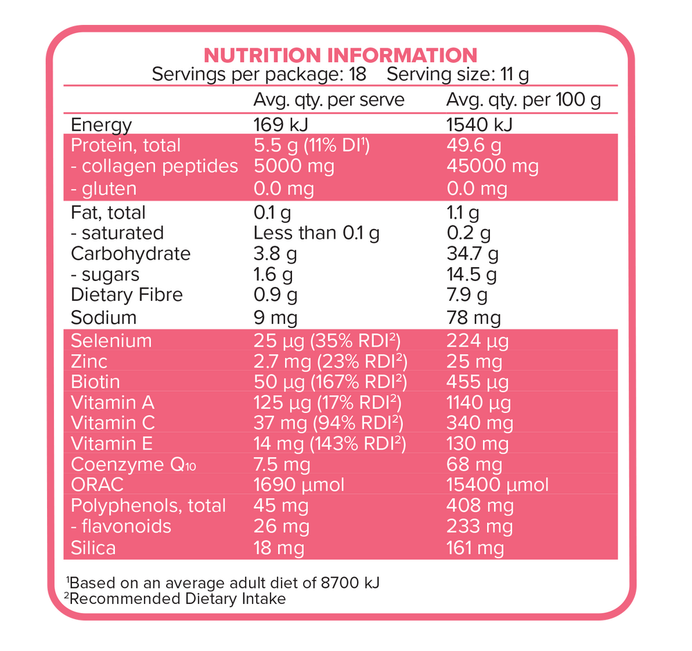 Illuminate your beauty routine with our unique & delicious Antiox Beauty Collagen. Glow from the inside out with our premium Hydrolysed Marine Collagen Peptides, antioxidant superfoods, vital phytonutrients, Coenzyme Q10 and Silica. Antiox Beauty Collagen also features Vitamin C to promote collagen formation and protect from cellular damage, Zinc and Vitamin A for skin repair and regeneration, and Selenium for optimal hair and nail strength^ making it the perfect addition to your everyday.