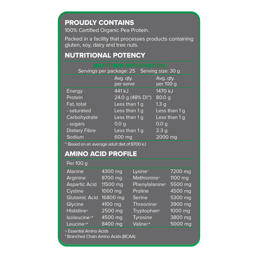 Morlife Certified Organic Pea Protein is a high-quality vegan plant protein with a complete amino acid profile. Protein is important for tissue building and repair as well as the maintenance of healthy muscle and bones#.