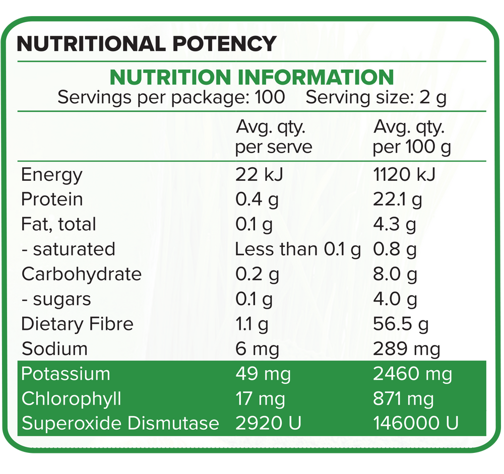 Morlife Certified Organic Barley Grass is a potent super green made from the young shoots of barley grass. It is a natural source of nutrients and phytochemicals including antioxidants Chlorophyll and Superoxide Dismutase. Our Barley Grass is grown organically in natural environments, without the use of synthetic and artificial chemicals, pesticides or fertilisers.