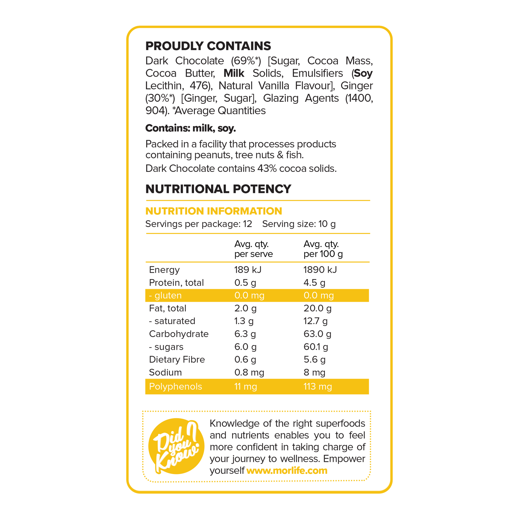 Chocolate, spice & everything nice. Morlife has crafted the ultimate indulgence, with delectable Australian ginger pieces coated in premium dark chocolate, creating a deliciously decadent treat.